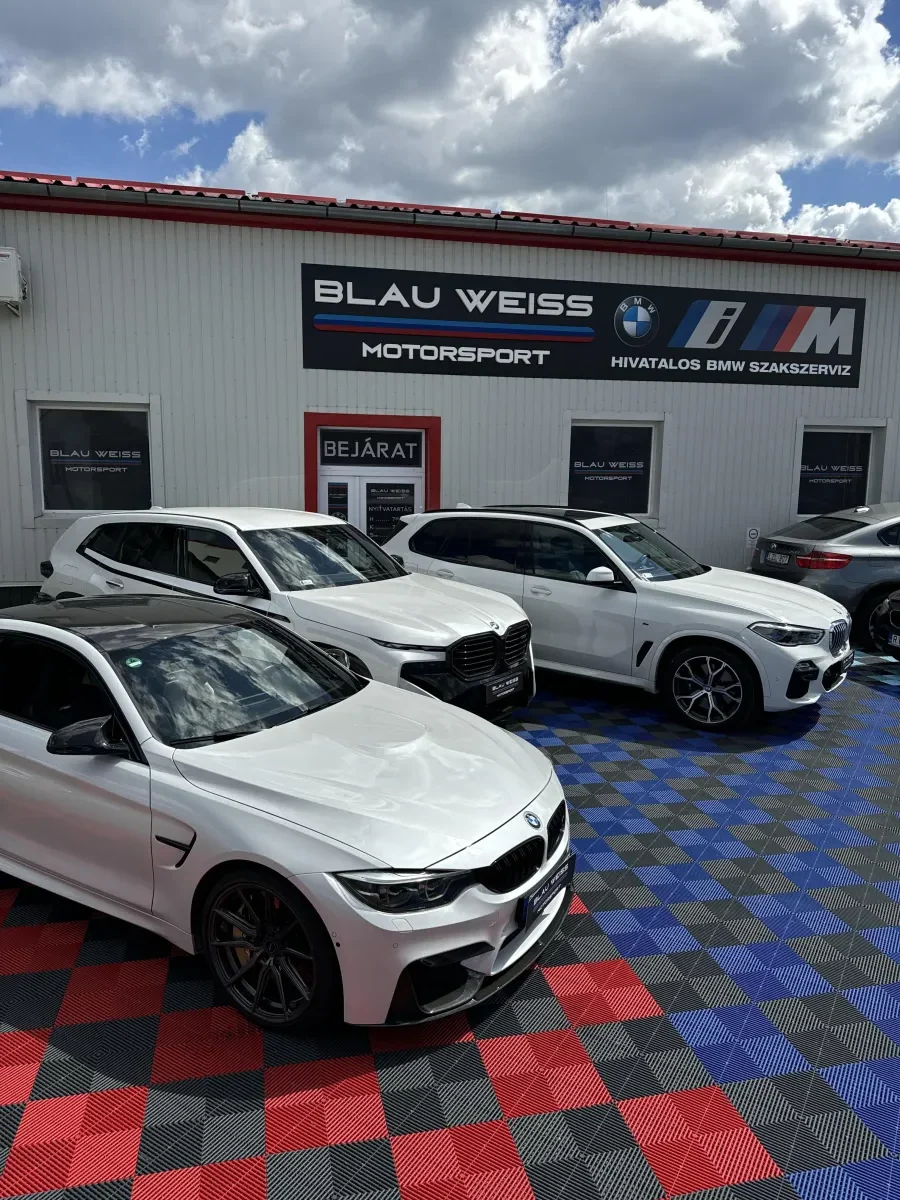A műhely dizájnja egy álomból született: tiszta, rendezett és igényes. Hiszen miért kellene beérned kevesebbel, ha a BMW-d megérdemli a legjobbat? Sok szervizben jártam, és mindig elszomorított a koszos padló, az olajos alkatrészek és a zsúfolt terek. Nálunk ilyennel nem találkozol.